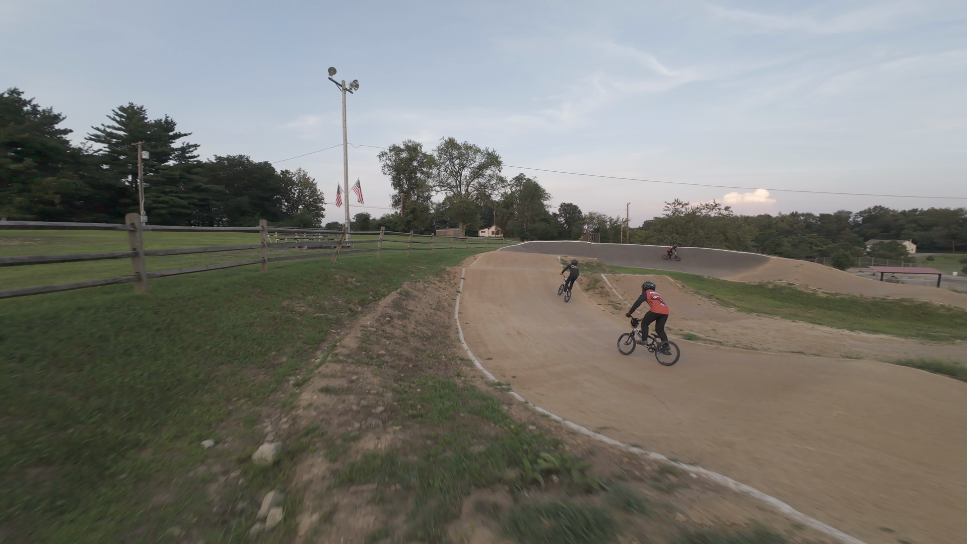 • BMX racers at South Park BMX track during sunset.