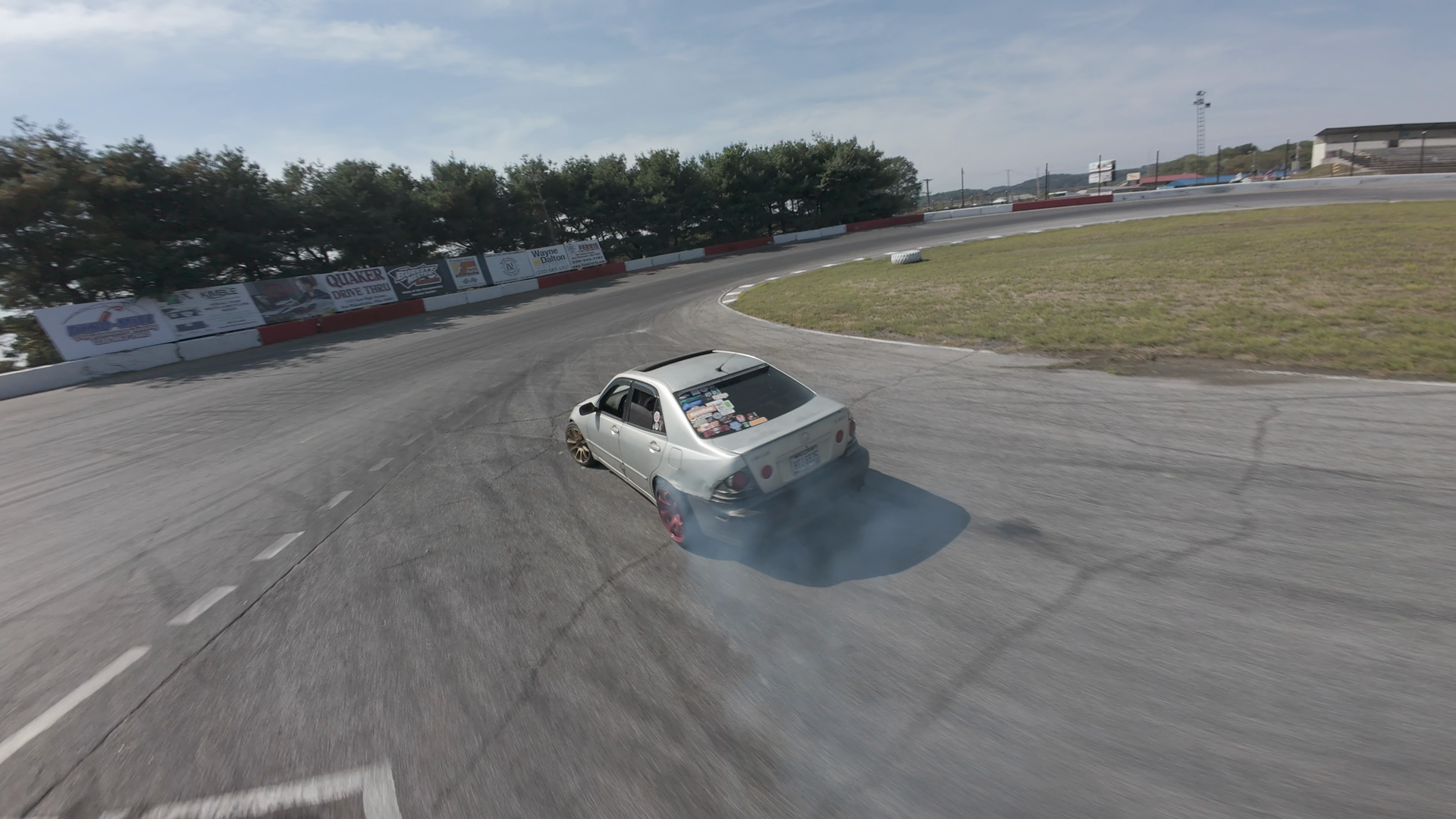 • Green Honda Civic Type R drifts on Midvale Speedway.