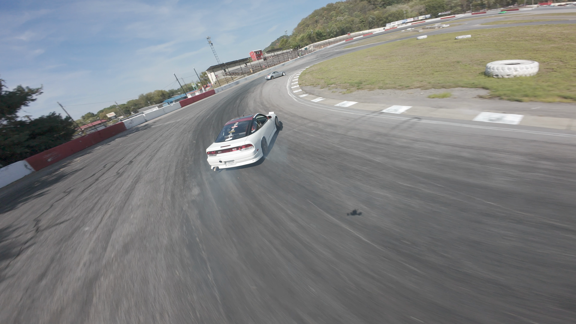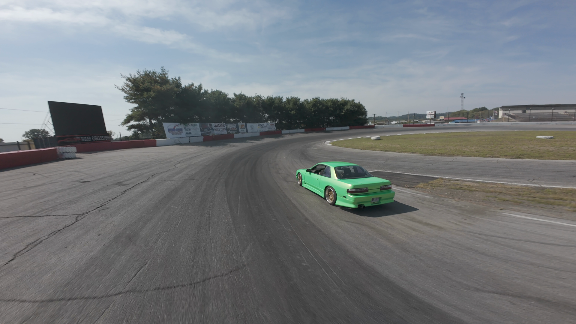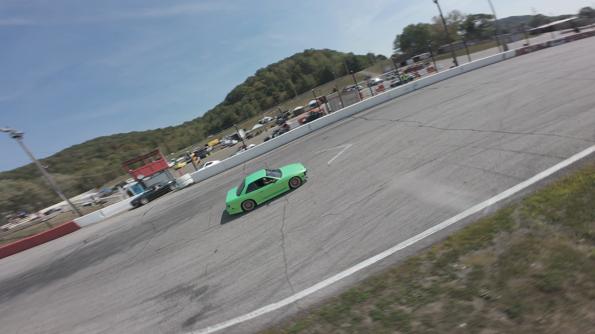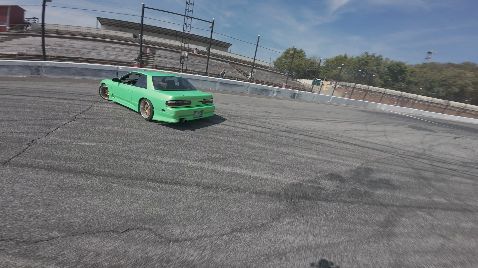 • Green Nissan Silvia S14 spinning at Midvale Speedway.